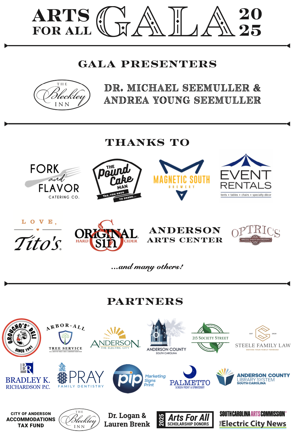 The 2025 Arts for All Gala & Awards: Down at the OzDust was an unforgettable evening! Our dedicated Gala Committee aimed to take you to the enchanting cavern-chic ballroom from Wicked. We couldn't have accomplished this without the generous support of our sponsors and partners, local businesses, artists, and individual donors. Below, you can view some photos from the evening, captured by Sara Touchet Photography!